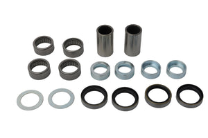 Over time the seals and bearings on the swing arm of a motocross or enduro bike can become worn and fail. Our swing arm bearing kits are supplied with all parts required to restore and repair the swing arm to perfect working order. The kit that you receive will include the exact components shown in the picture.