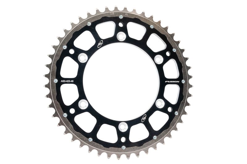 AS3 Performance Factory Series rear sprockets combine the strength of steel and the light weight of aluminium to give you the ultimate hard wearing rear sprocket. The outer ring is manufactured from hardened steel with a nickel coating and will outlast an aluminium sprocket by up to 3 times. The inner ring is constructed from aircraft grade 7075-T6 aluminium and is up to 50% lighter than a standard steel sprocket.