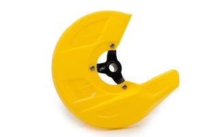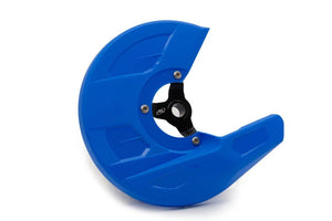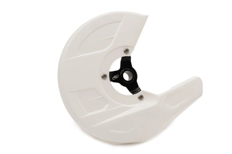AS3 Performance front brake disc and caliper guards are an essential protection part when riding on rough motocross tracks and in tough enduro conditions. The guard is made up from an aluminium bracket which replaces the left wheel spacer and a strong but lightweight replaceable plastic guard which wraps completely around the front brake disc and lower part of the front brake caliper. Compatible with 270mm oversize discs and available in a choice of 7 colours.