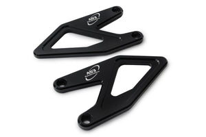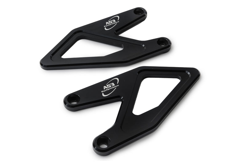 AS3 Performance heel plates are CNC machined from billet aluminium. They have an anodised finish to resist wear and corrosion with AS3 Performance laser etched logos on each plate. The heel plates mount to the bike using the OEM bolts and are a great visual upgrade when installed.