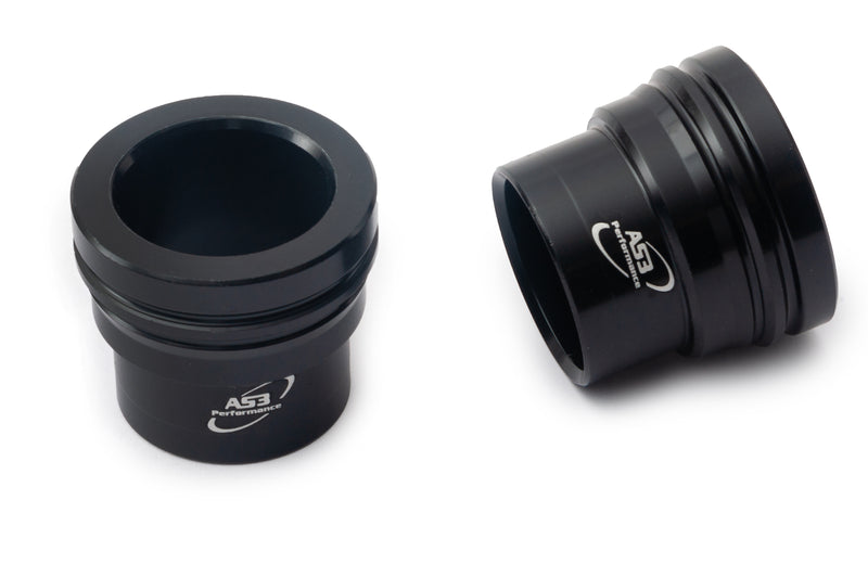 AS3 Performance front wheel spacers are precisely CNC machined for the perfect fit around the front wheel spindle and hub. They are machined from billet aluminium for long lasting durability and have an anodised finish to resist wear and corrosion with AS3 Performance branding on each wheel spacer.