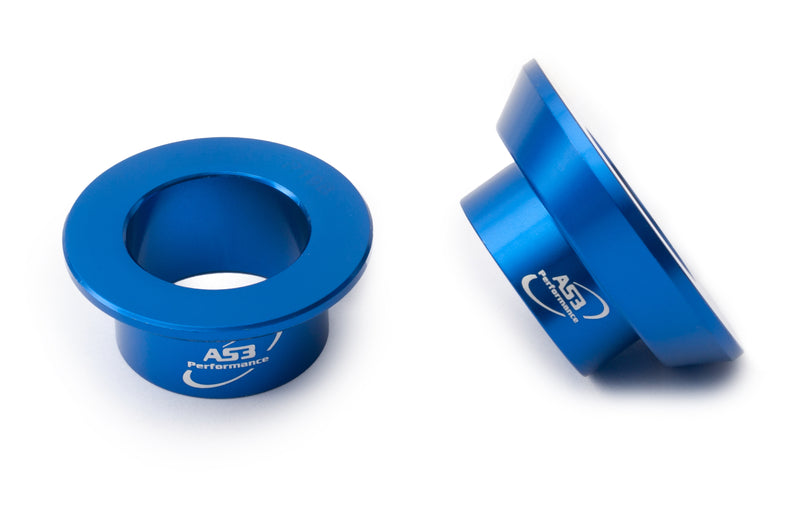 AS3 Performance rear wheel spacers are precisely CNC machined for the perfect fit around the rear wheel spindle and hub. They are machined from billet aluminium for long lasting durability and have an anodised finish to resist wear and corrosion with AS3 Performance branding on each wheel spacer.