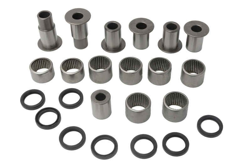Over time the seals and bearings in the linkage that connects the swing arm and rear shock absorber on motocross and enduro bikes can become worn and fail. Our linkage bearing kits are supplied with all parts required to restore and repair the linkage to perfect working order. The kit that you receive will include the exact components shown in the picture.