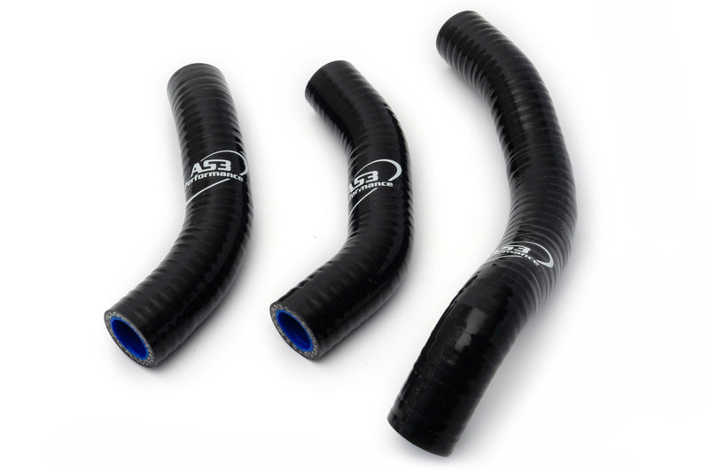 AS3 Performance silicone radiator hoses are manufactured from high quality silicone with a polyester reinforcement to make them strong, durable and less vulnerable to puncture or damage than the standard rubber hoses. Our silicone hose kits are used by many of our sponsored teams and riders in a variety of race conditions. The hoses come in a gloss finish with AS3 Performance branding.