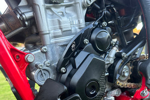 AS3 Performance ignition wire guards are designed to mount to the two top bolt holes on the ignition cover and protect the exposed wire that runs above the ignition cover. They are manufactured from 6061 billet aluminium and have an anodised finish with AS3 Performance branding.
