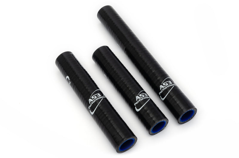 AS3 Performance silicone radiator hoses are manufactured from high quality silicone with a polyester reinforcement to make them strong, durable and less vulnerable to puncture or damage than the standard rubber hoses. Our silicone hose kits are used by many of our sponsored teams and riders in a variety of race conditions. The hoses come in a gloss finish with AS3 Performance branding.