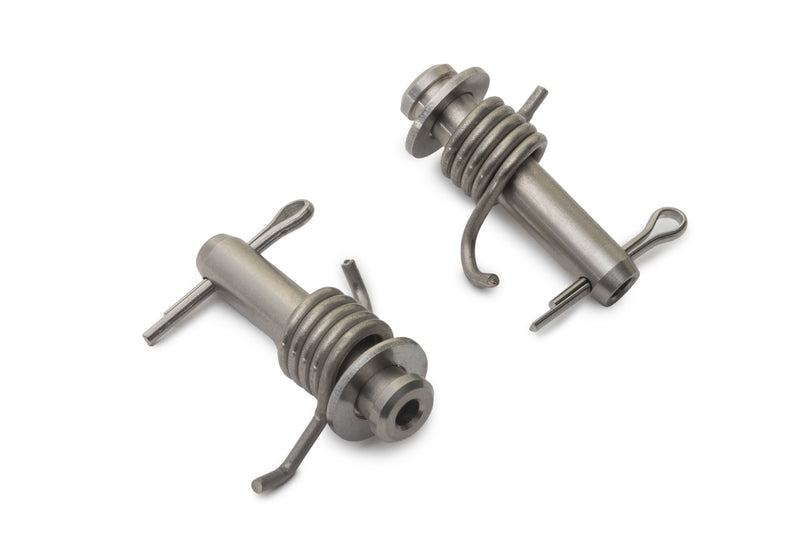 AS3 Performance foot peg pins are machined from stainless steel to resist rust and corrosion, they come complete with springs and split pins as pictured and are direct replacements for the OEM foot peg pins.