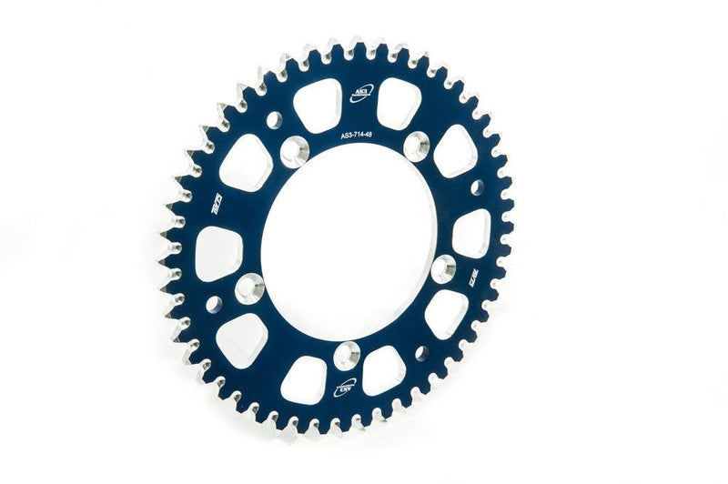 AS3 Performance 7075 aluminium rear sprockets are designed and manufactured for AS3 by one of the world's leading sprocket manufacturers and have been tried and tested by some of the best riders on some of the toughest tracks in the world. They are a lightweight, durable rear sprocket and are CNC machined from high quality 7075-T6 aluminium. The sprockets feature self-cleaning grooves between each tooth and have a smooth anodised finish with AS3 Performance branding.