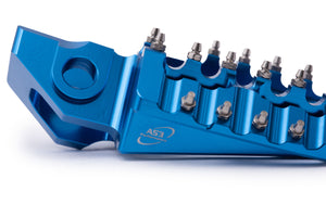 AS3 Performance extra large foot pegs are based on our Racing Series foot pegs but with an extra 12.5mm added at each side of the foot peg. More surface area allows for more teeth, our extra large foot pegs have a combined total of 50 individual stainless steel teeth, 16 more than our standard Racing Series foot pegs. They are CNC machined from 6061 billet aluminium and have an anodised finish with AS3 Performance branding.