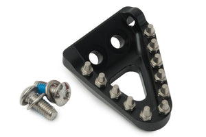 AS3 Performance rear brake pedal tips are CNC machined from 6061 billet aluminium and feature 11 stainless steel replaceable teeth. They are supplied with bolts for installation as pictured and replace the OEM tip with no modifications required.