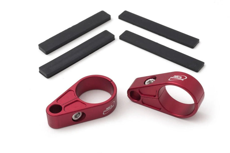 AS3 Performance front brake line clamps are CNC machined from strong but lightweight 6061-T6 aluminium for a precise fit and long lasting durability. They are supplied as a pair and come with 4 rubber spacers as pictured for use on both 1" and 3/4" A-Arms.
