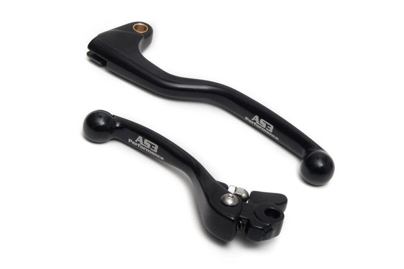 AS3 Performance front brake and clutch levers are direct replacements for the OEM levers. They are also cold forged which allows the levers to bend on impact rather than snapping like most OEM cast levers would. The levers are anodised in black and feature AS3 Performance branding.