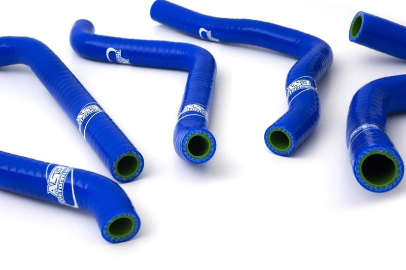 AS3 Performance silicone radiator hoses are manufactured from high quality silicone with a polyester reinforcement to make them strong, durable and less vulnerable to puncture or damage than the standard rubber hoses. Our silicone hose kits are used by many of our sponsored teams and riders in a variety of race conditions. The hoses come in a gloss finish with AS3 Performance branding.