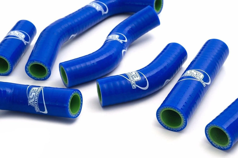 AS3 Performance silicone radiator hoses are manufactured from high quality silicone with a polyester reinforcement to make them strong, durable and less vulnerable to puncture or damage than the standard rubber hoses. Our silicone hose kits are used by many of our sponsored teams and riders in a variety of race conditions. The hoses come in a gloss finish with AS3 Performance branding.