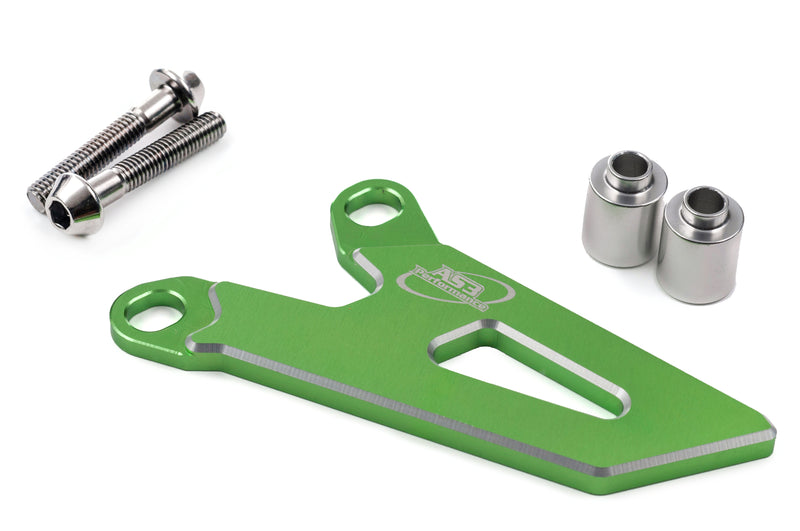 AS3 Performance front sprocket covers are CNC machined from strong and lightweight 7009-T6 aluminium making them much stronger and less vulnerable to damage than standard plastic sprocket guards. The sprocket guards will prevent mud and other debris from getting caught up in your chain and sprocket and look great anodised in green with AS3 Performance branding.
