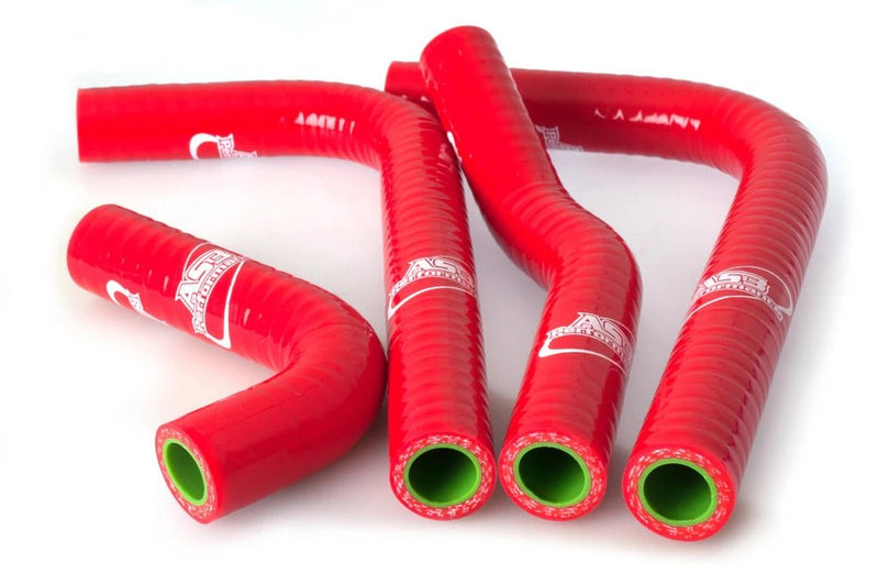 AS3 Performance silicone radiator hoses are manufactured from high quality silicone with a polyester reinforcement to make them strong, durable and less vulnerable to puncture or damage than the standard rubber hoses. Our silicone hose kits are used by many of our sponsored teams and riders in a variety of race conditions. The hoses come in a gloss finish with AS3 Performance branding.
