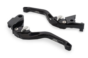 AS3 Performance adjustable front brake and clutch levers are available for a wide range of sports bikes, sports touring bikes and dual sport motorcycles. They are CNC machined from aircraft grade 6061 T6 aluminium and feature a short lever design to allow the rider to control the levers with either 2 or 3 fingers. The levers have 6 adjustable reach settings which can be easily set by using the silver adjuster. They come in a black anodised finish with AS3 Performance branding on the front of the levers.