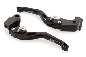 AS3 Performance adjustable front brake and clutch levers are available for a wide range of sports bikes, sports touring bikes and dual sport motorcycles. They are CNC machined from aircraft grade 6061 T6 aluminium and feature a short lever design to allow the rider to control the levers with either 2 or 3 fingers. The levers have 6 adjustable reach settings which can be easily set by using the silver adjuster. They come in a black anodised finish with AS3 Performance branding on the front of the levers.