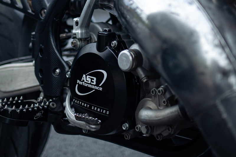 AS3 Performance Factory Series clutch covers are CNC machined from billet aluminium and are stronger and more durable than the standard OEM clutch covers. All AS3 Performance clutch covers are hard anodised to help resist wear from boots and dirt rubbing against the outer face of the cover and feature laser etched AS3 Performance Factory Series branding.