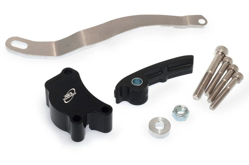 Protect your engine casings and clutch slave cylinder with the AS3 Performance case saver. CNC machined from strong but lightweight 6061 aluminium it provides excellent protection and gives you the confidence to ride as hard as you can without the possibility of an expensive repair to your engine casings or clutch slave cylinder. Anodised in black with AS3 Performance branding and comes with all parts pictured.
