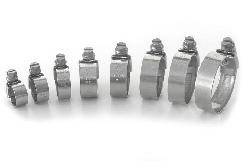 AS3 Performance/JCS Hi-Torque Hi-Grip stainless steel hose clips are the best clips on the market by far and have become the industry standard for motorsport applications throughout the world due to their high quality and performance. Made entirely from 18/8 marine quality stainless steel they are strong and ideal for corrosive environments. The clips have banded edges and extremely smooth inners giving the best possible protection to the hose and with a clean polished finish they are the most factory looking clips on the market.