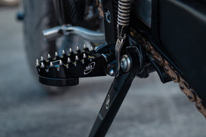 AS3 Performance side stands are cold forged from 6061 aluminium to provide maximum strength without adding extra weight to the bike. The forging process makes the side stand slightly softer than the cast OEM side stands which leaves them less vulnerable to damage on impact. The stands have an anodised finish with AS3 Performance branding and an injection moulded plastic base.