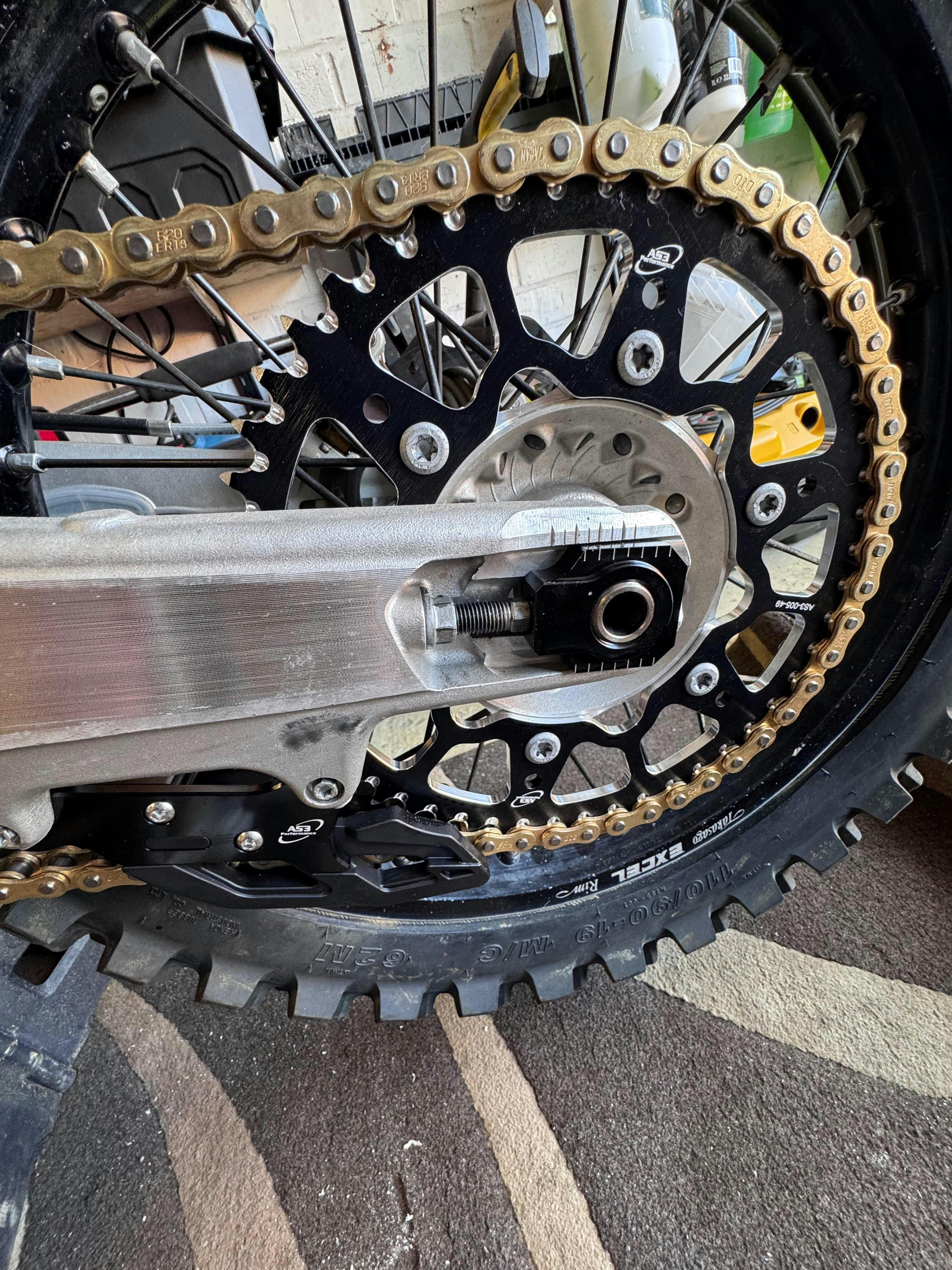 AS3 Performance chain guides have a CNC machined aluminium mounting bracket that provides a firm fixing to the swing arm and the lower part is made from strong, hard wearing plastic which will flex on impact but not bend, giving your rear sprocket maximum protection while keeping the chain running in line.