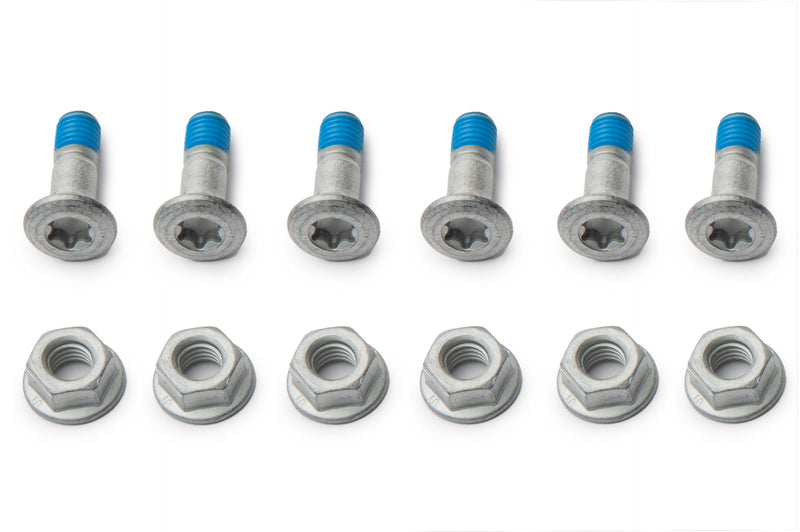AS3 Performance rear sprocket bolts come as a pack of 6 bolts complete with nuts and are dacromet coated to resist corrosion and wear. The bolts are a countersunk design with a star key head and have thread lock pre-applied to prevent them from coming loose. Always remember to check your rear sprocket bolts before riding.