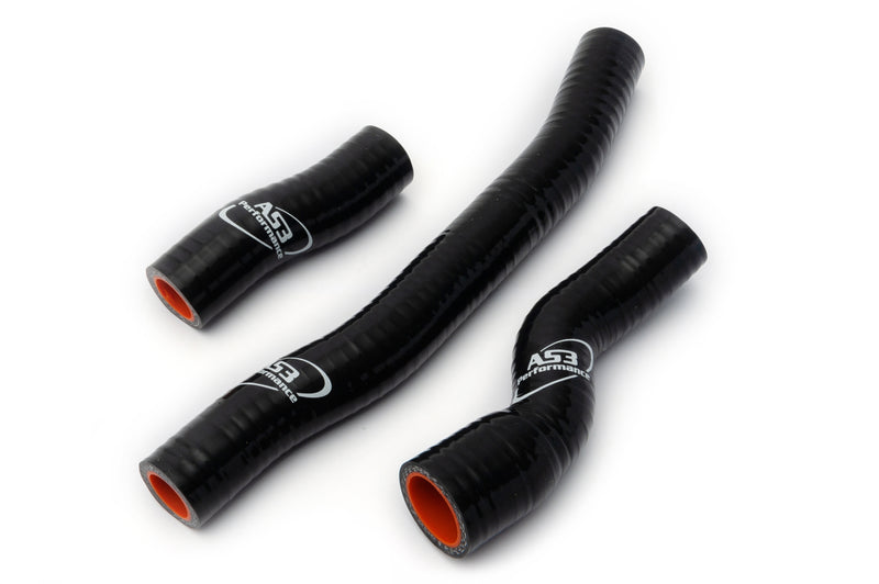 AS3 Performance silicone radiator hoses are manufactured from high quality silicone with a polyester reinforcement to make them strong, durable and less vulnerable to puncture or damage than the standard rubber hoses. Our silicone hose kits are used by many of our sponsored teams and riders in a variety of race conditions. The hoses come in a gloss finish with AS3 Performance branding.