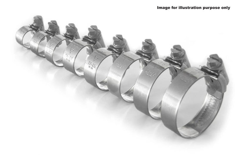 AS3 Performance/JCS Hi-Torque Hi-Grip stainless steel hose clips are the best clips on the market by far and have become the industry standard for motorsport applications throughout the world due to their high quality and performance. Made entirely from 18/8 marine quality stainless steel they are strong and ideal for corrosive environments. The clips have banded edges and extremely smooth inners giving the best possible protection to the hose and with a clean polished finish they are the most factory looking clips on the market.