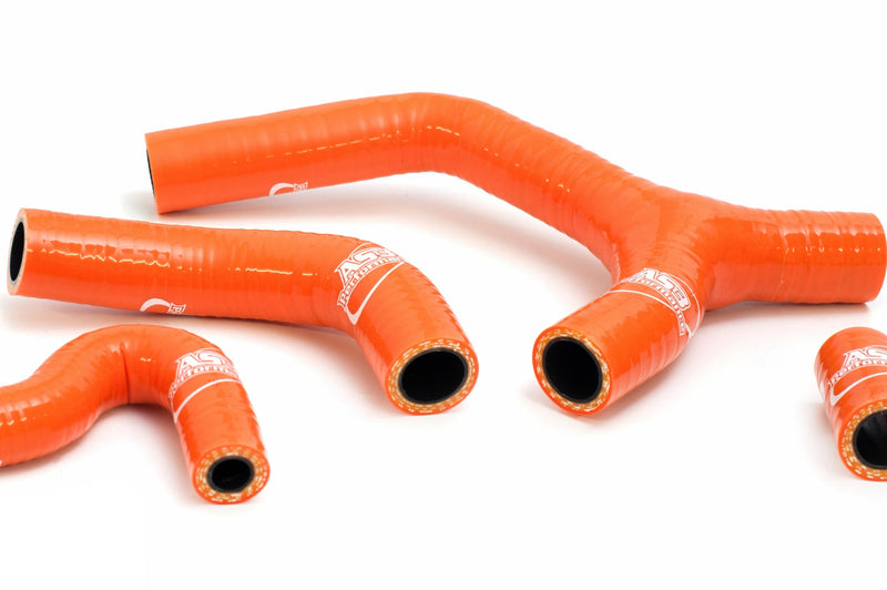 AS3 Performance silicone radiator hoses are manufactured from high quality silicone with a polyester reinforcement to make them strong, durable and less vulnerable to puncture or damage than the standard rubber hoses. Our silicone hose kits are used by many of our sponsored teams and riders in a variety of race conditions. The hoses come in a gloss finish with AS3 Performance branding.