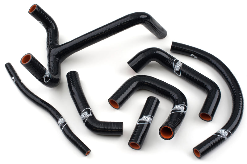 AS3 Performance silicone radiator hoses are manufactured from high quality silicone with a polyester reinforcement to make them strong, durable and less vulnerable to puncture or damage than the standard rubber hoses. Our silicone hose kits are used by many of our sponsored teams and riders in a variety of race conditions. The hoses come in a gloss finish with AS3 Performance branding.