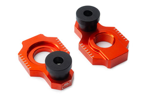 KTM 690 SMC 690 R 2010-2024 AS3 REAR AXLE CHAIN ADJUSTER BLOCKS WITH SLIDERS ORANGE