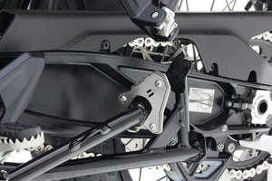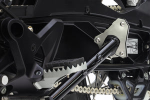 AS3 Performance side stand base extension plates are designed to increase the surface area of the side stand base to make the bike much more stable when parked up on rough or soft ground. They are constructed by combining 2 strong stainless steel plates between a lighter aluminium bracket in a textured black and ice polished finish with AS3 Performance branding.