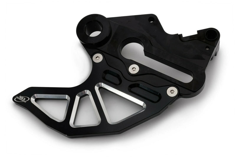 AS3 Performance rear brake disc guards are CNC machined from 6061 billet aluminium to provide maximum protection to the rear brake disc while keeping weight to a minimum. The disc guard comes complete with the rear brake caliper carrier and is the strongest and most secure rear brake disc guard that we offer, ideal for tough extreme enduro conditions and the number one choice for many of our sponsored riders.