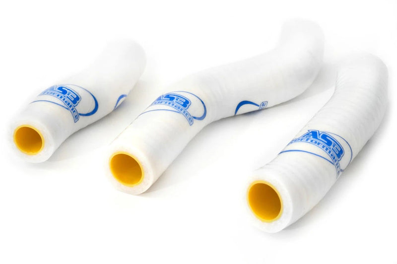 AS3 Performance silicone radiator hoses are manufactured from high quality silicone with a polyester reinforcement to make them strong, durable and less vulnerable to puncture or damage than the standard rubber hoses. Our silicone hose kits are used by many of our sponsored teams and riders in a variety of race conditions. The hoses come in a gloss finish with AS3 Performance branding.