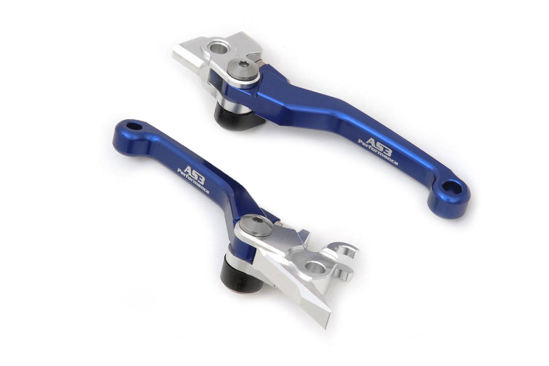 AS3 Performance flexible and adjustable front brake and clutch levers. Manufactured from high-strength aluminium, forged and then CNC machined to guarantee a long life service and a precise fit. The pivot design allows the levers to fold outwards on impact preventing them from breaking or bending. The levers are also have an adjustable reach allowing you to set them at a distance to suit the rider.