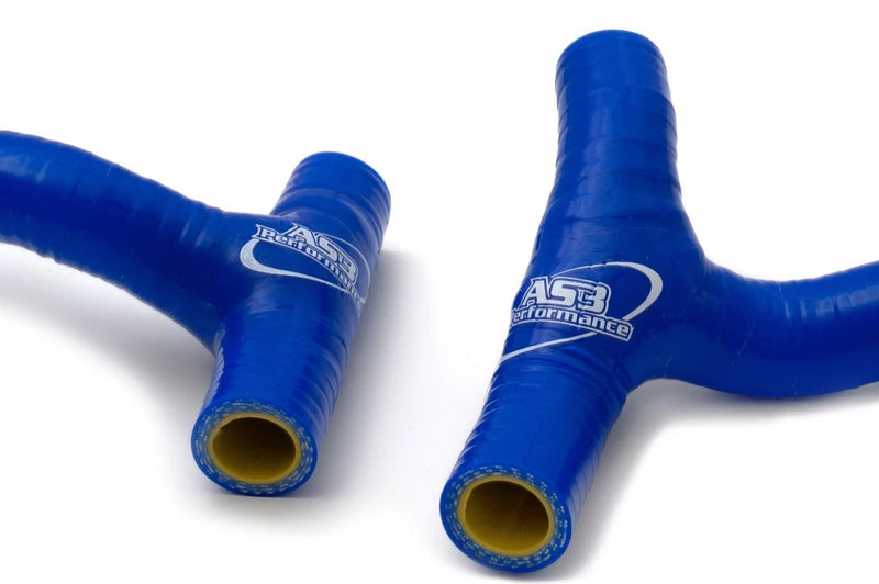 AS3 Performance silicone radiator hoses are manufactured from high quality silicone with a polyester reinforcement to make them strong, durable and less vulnerable to puncture or damage than the standard rubber hoses. Our silicone hose kits are used by many of our sponsored teams and riders in a variety of race conditions. The hoses come in a gloss finish with AS3 Performance branding.