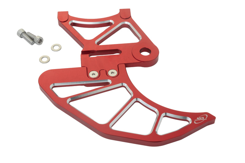 AS3 Performance rear brake disc guards are CNC machined from 6061 billet aluminium to provide maximum protection to the rear brake disc while keeping excess weight to a minimum. The disc guard comes complete with the rear brake caliper carrier for a solid and secure mount to the bike. Ideal for tough enduro style conditions and on rough and rocky terrain.