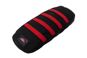 AS3 Performance Ribbed Gripper seat covers feature 4 ribbed traction strips for improved grip and control. The seat covers are made from soft but hard wearing material with double stitched seams for increased strength and durability. With a textured finish, coloured strips and AS3 Performance rubber badge branding they look great on the bike and are a big upgrade on the standard OEM seat covers.