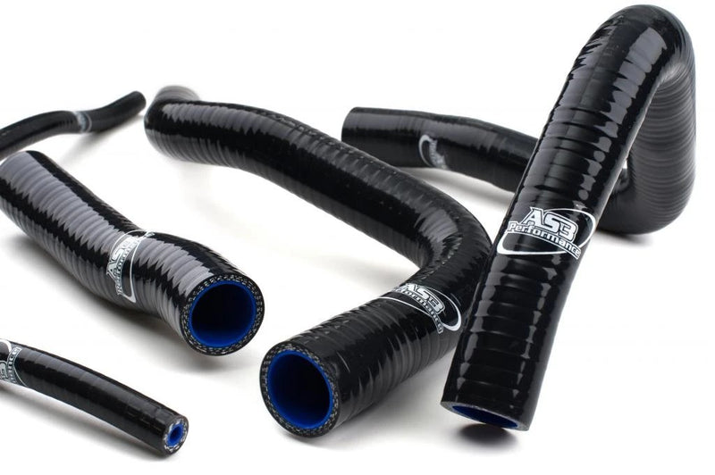 AS3 Performance silicone radiator hoses are manufactured from high quality silicone with a polyester reinforcement to make them strong, durable and less vulnerable to puncture or damage than the standard rubber hoses. Our silicone hose kits are used by many of our sponsored teams and riders in a variety of race conditions. The hoses come in a gloss finish with AS3 Performance branding.