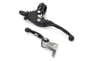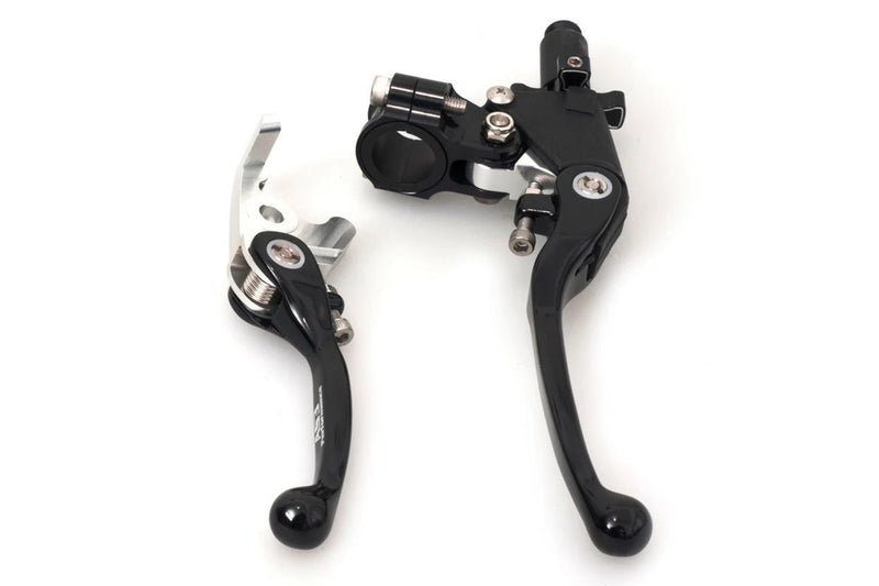 AS3 Performance Factory Series front brake and clutch levers are one of the most advanced and adjustable levers on the market. Both levers feature a flexible pivot design which allows the levers to bend outwards on impact to prevent them snapping or bending. Both levers also have an adjustable reach setting allowing the rider to set their preferred distance between the lever and the bars. The clutch assembly replaces the entire OEM perch and is fitted with a 'quick adjust' clutch cable adjuster which allows the rider to easily adjust the responsiveness of clutch cable while riding. The clamp on the clutch perch comes with 2 smooth plastic inserts, these inserts help prevent damage to the assembly by making the whole perch rotate on impact. Lastly the clutch assembly is finished off with 2 rubber boots which neatly cover vital areas to keep out dirt and debris.