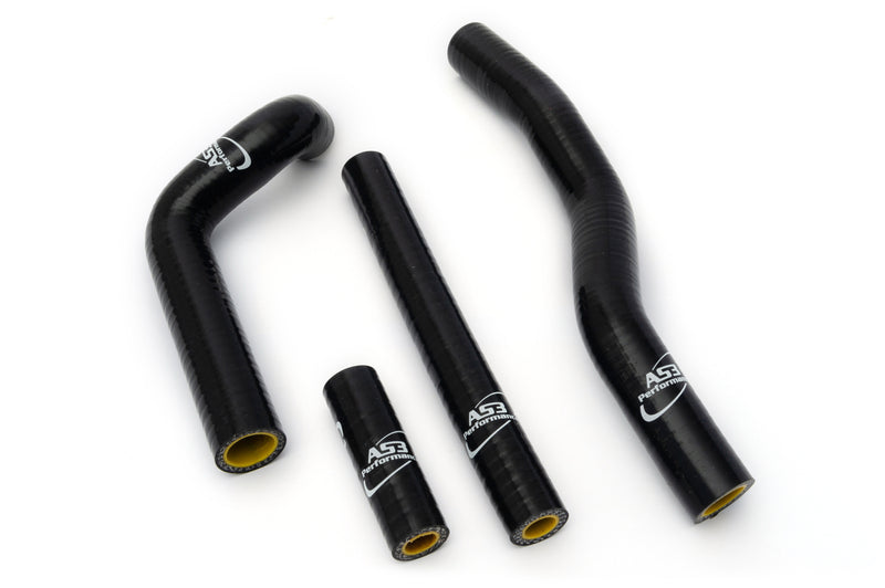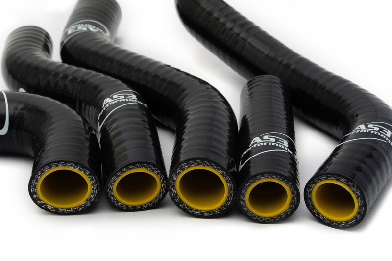 AS3 Performance silicone radiator hoses are manufactured from high quality silicone with a polyester reinforcement to make them strong, durable and less vulnerable to puncture or damage than the standard rubber hoses. Our silicone hose kits are used by many of our sponsored teams and riders in a variety of race conditions. The hoses come in a gloss finish with AS3 Performance branding.