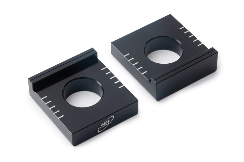 AS3 Performance rear axle blocks are CNC machined from billet aluminium for the perfect fit in the swing arm and around the rear wheel spindle. The alignment scales on the top and bottom of each block are designed to help correctly position the rear wheel. They have a smooth anodised finish and feature AS3 Performance branding on the back of both blocks.
