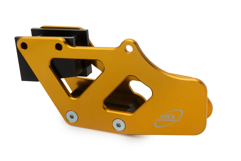 AS3 Performance aluminium chain guides are CNC machined from 6061-T6 aluminium for increased strength and durability. Featuring hard wearing plastic inserts, they will not bend or buckle like the OEM or plastic guides and will protect your chain in some of the toughest of riding conditions.