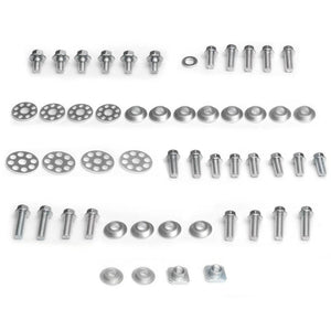 AS3 Performance plastics fastener kits are a complete set of bolts and spacers etc for all the plastic bodywork on the bike including the radiator shrouds, front and rear fenders, side panels, front number board, seat and fork guards. The parts in the picture are the exact parts you will receive and the kit is supplied in a small blister pack that can easily fit in a bag or tool box.