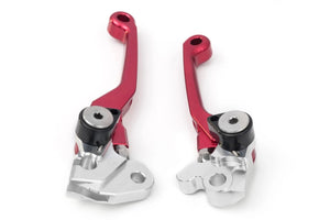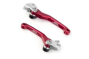 AS3 Performance flexible and adjustable front brake and clutch levers. Manufactured from high-strength aluminium, forged and then CNC machined to guarantee a long life service and a precise fit. The pivot design allows the levers to fold outwards on impact preventing them from breaking or bending. The levers are also have an adjustable reach allowing you to set them at a distance to suit the rider. Anodised in red with grey AS3 Performance logo for that factory look.