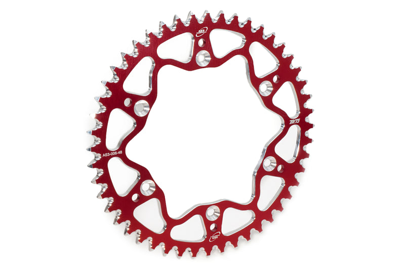 AS3 Performance 7075 aluminium rear sprockets are designed and manufactured for AS3 by one of the world's leading sprocket manufacturers and have been tried and tested by some of the best riders on some of the toughest tracks in the world. They are a lightweight, durable rear sprocket and are CNC machined from high quality 7075-T6 aluminium. The sprockets feature self-cleaning grooves between each tooth and have a smooth anodised finish with AS3 Performance branding.