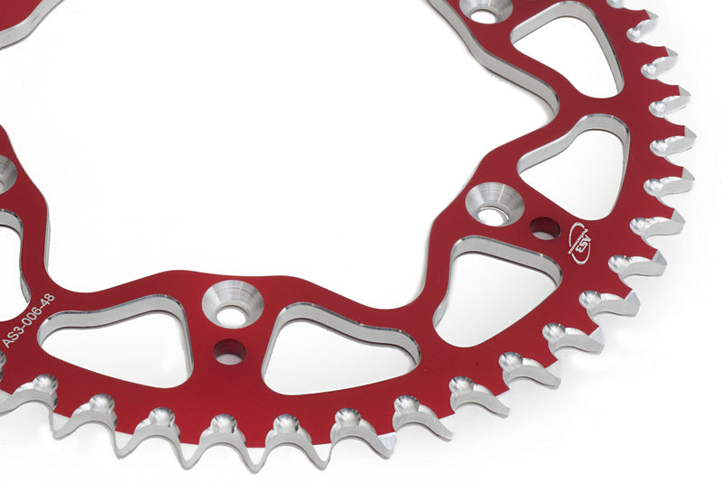 AS3 Performance 7075 aluminium rear sprockets are designed and manufactured for AS3 by one of the world's leading sprocket manufacturers and have been tried and tested by some of the best riders on some of the toughest tracks in the world. They are a lightweight, durable rear sprocket and are CNC machined from high quality 7075-T6 aluminium. The sprockets feature self-cleaning grooves between each tooth and have a smooth anodised finish with AS3 Performance branding.