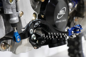 Our AS3 Performance Supermoto foot pegs have been developed with the help of Italian supermoto team FRT Racing and have been tried and tested by their two riders Edgardo Borella and Alberto Moseriti. The foot pegs are an adaption of our original Racing Series foot pegs which now incorporates the replacement plastic sliders required for supermoto. The foot pegs are CNC machined from billet aluminium to keep weight to a minimum and have a 57mm wide platform fitted with 32 stainless steel teeth for superior grip and traction.